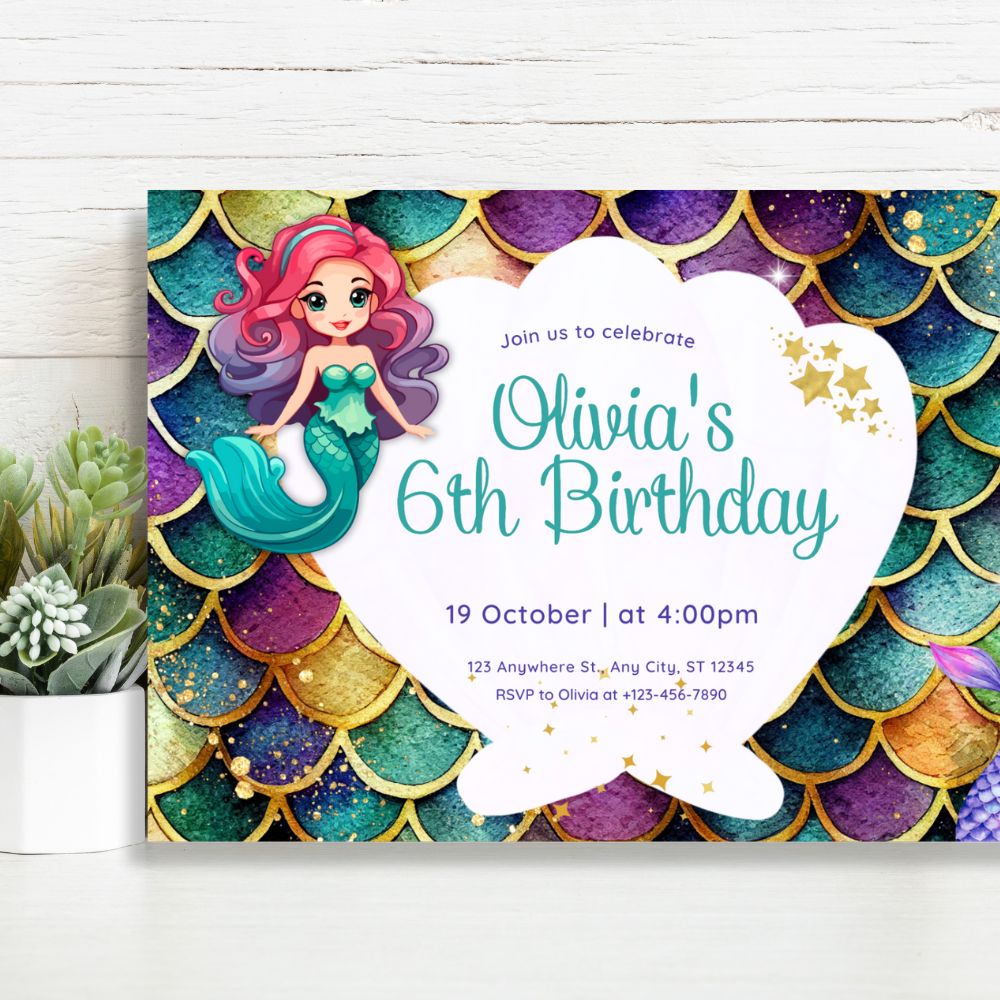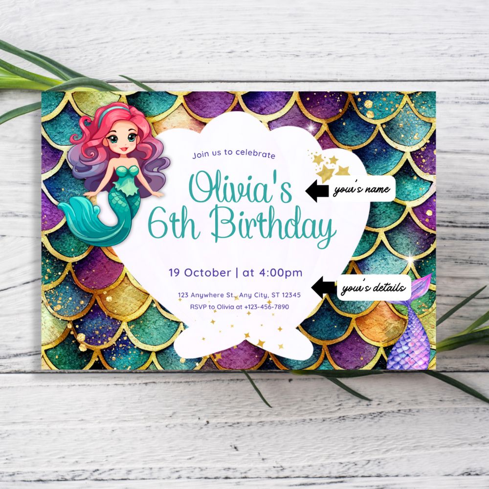MERMAID PERSONALISED BIRTHDAY INVITATIONS