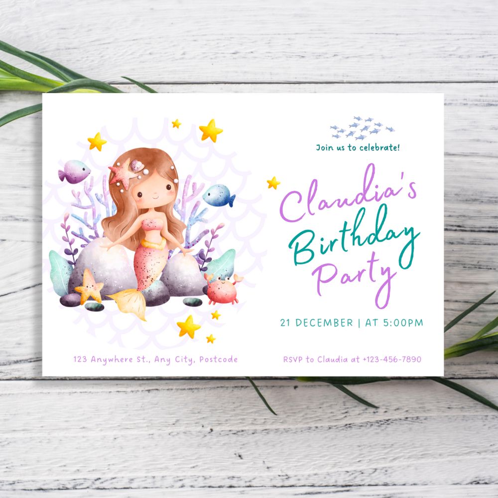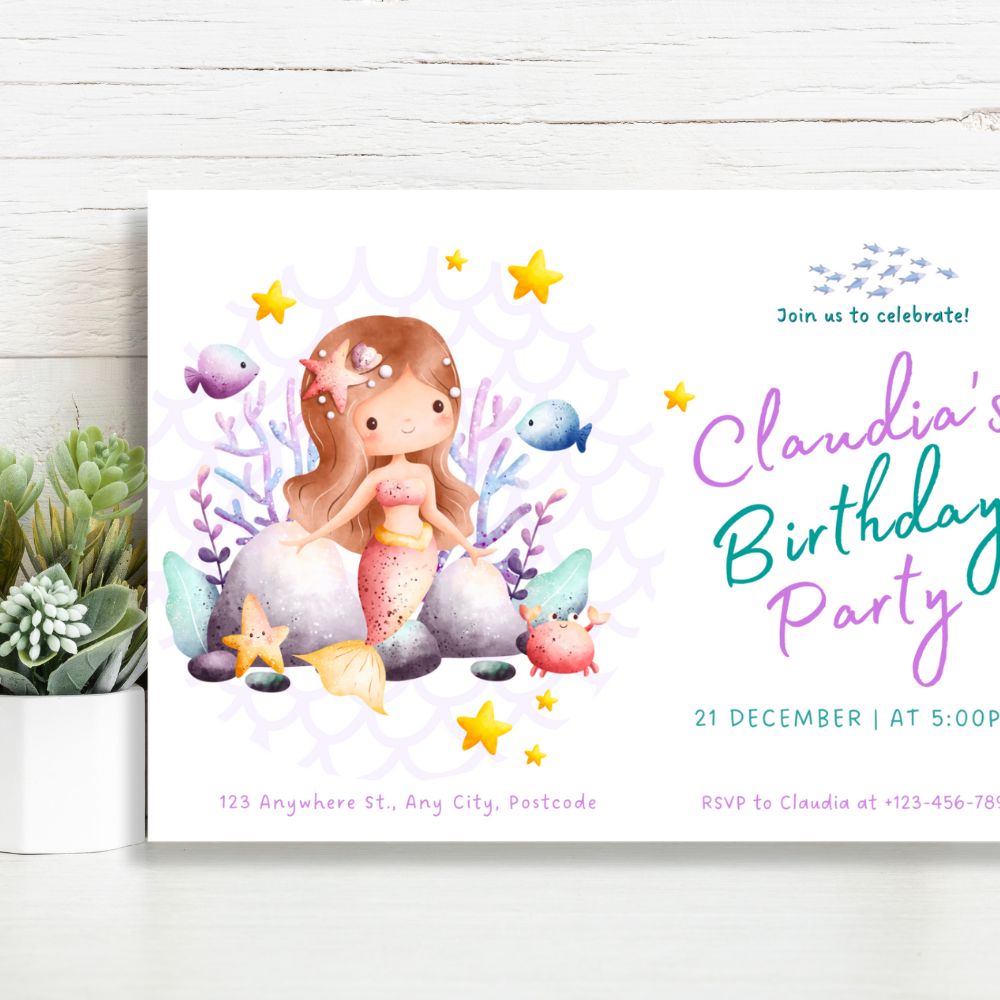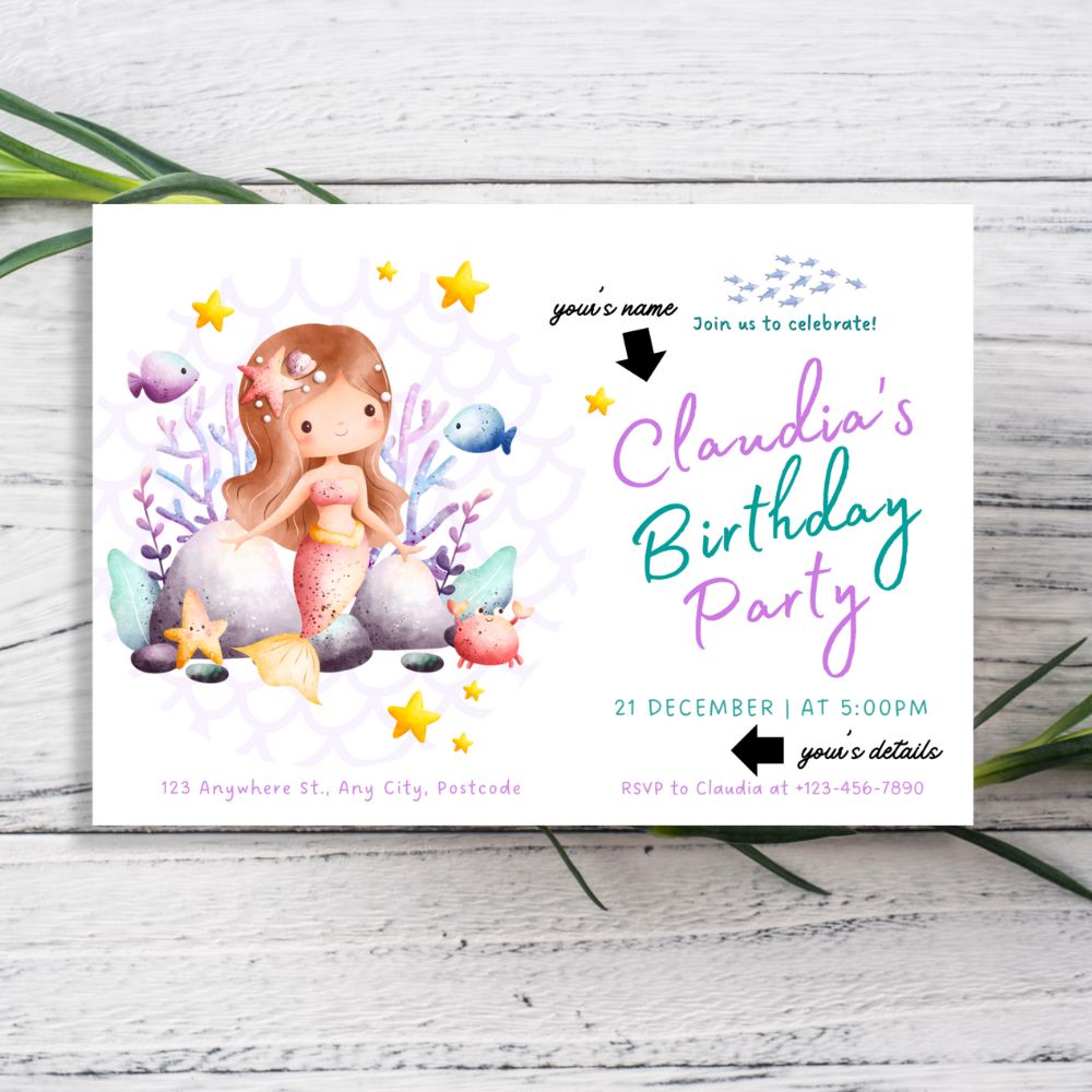 Celebrate in enchanting style with our Little Mermaid Personalised Birthday Invitations. Perfect for underwater-themed birthdays, they set a whimsical tone that delights guests and makes your celebration truly special.